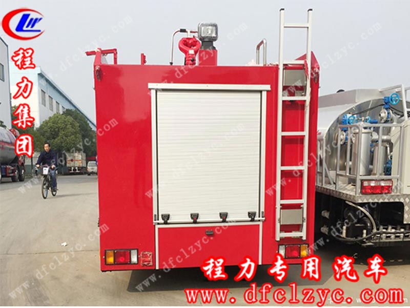 上圖為湖北程力慶鈴五十鈴3噸水罐消防車外觀后視圖